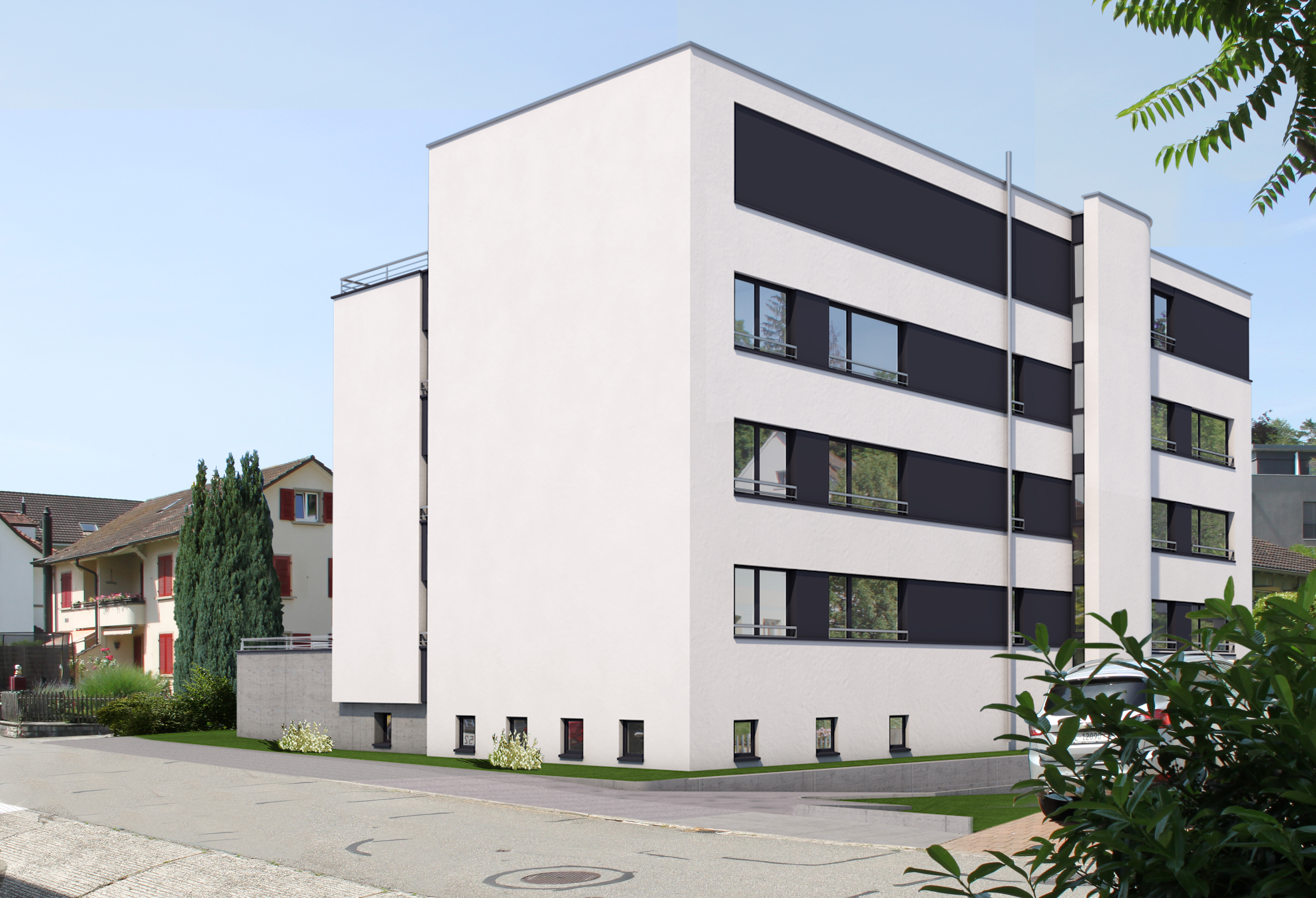 An zentraler Lage in Frenkendorf entsteht ein Mehrfamilienhaus mit sieben modernen 3.5 und 4.5 Zimmer Wohnungen mit Balkon und Wintergarten.